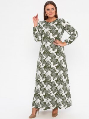 Miss Havva Yeşil Beyaz Desenli Elbise