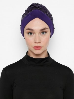 Sevda Bone Mor Pullu Çapraz Bone