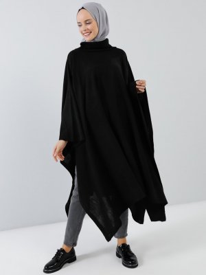 Benin Siyah Boğazlı Triko Salaş Panço
