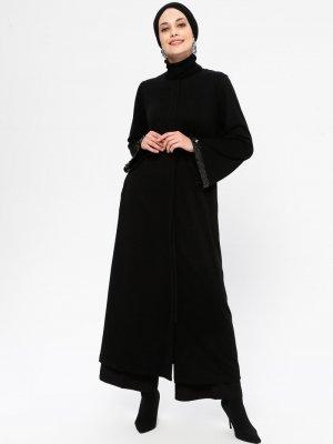MİCCA Siyah Kollar Pul Detaylı Pardesü