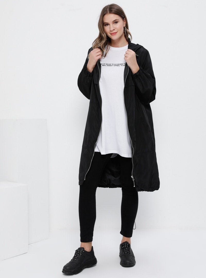 Alia Siyah Kapüşonlu Yağmurluk Kap