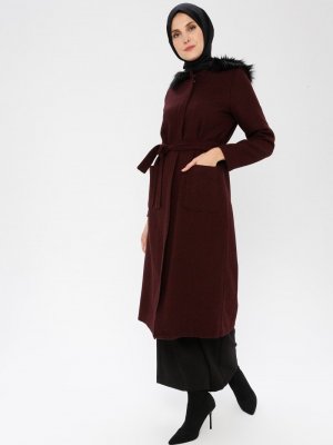 Miss Cazibe Bordo Gizli Fermuarlı Kaban