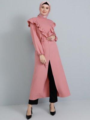 Tavin Gül Kurusu Volan Detaylı Yırtmaçlı Tunik