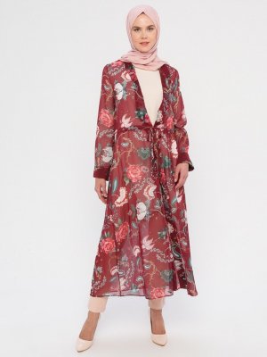 NL17 Bordo Çiçek Desenli Kap