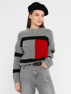 Zentoni Gri Kırmızı Triko Kazak