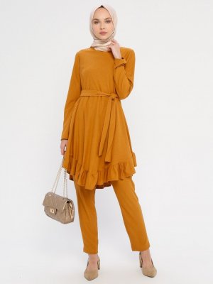 Panaline Camel Volanlı Tunik&Pantolon 2'li Takım