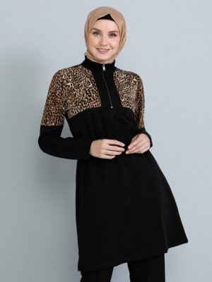 Tavin Siyah Leopar Desenli Tunik
