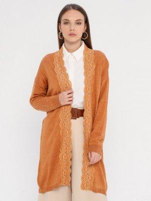 Zentoni Taba Dantel Detaylı Triko Hırka