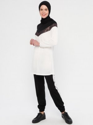 La Giza Fashion Ekru Leopar Şeritli Tunik&Pantolon İkili Takım
