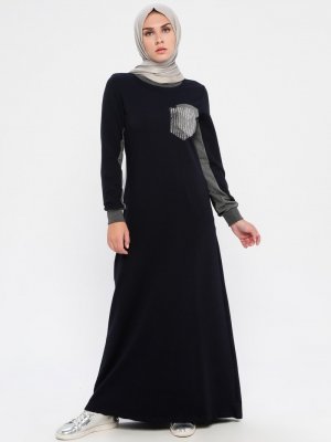 Ginezza Lacivert Cep Detaylı Elbise