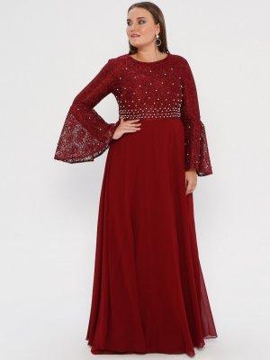 MODAYSA Bordo Boncuk Detaylı Elbise