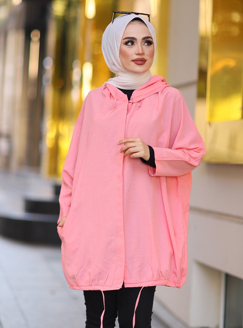 Pardesü Dünyası Pembe Reglan Kollu Gizli Düğmeli Kap