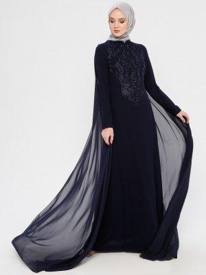 MODAYSA Lacivert Dantel Detaylı Abiye Elbise