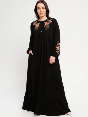 Ginezza Siyah Nakışlı Elbise