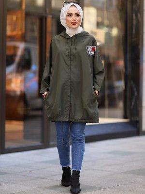 Pardesü Dünyası Haki Yeşili Reglan Kollu Baskılı Kap
