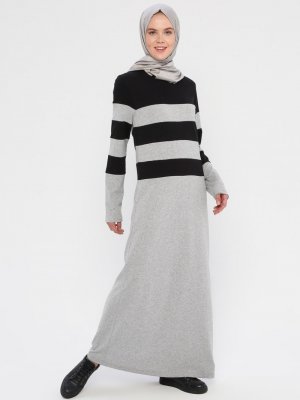 La Giza Fashion Siyah Gri Çizgili Spor Elbise