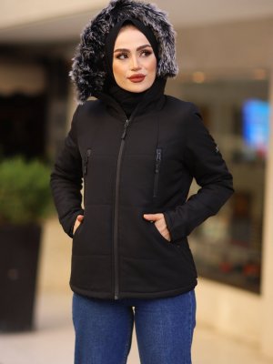 Pardesü Dünyası Siyah İçi Peluşlu Fermuarlı Mont