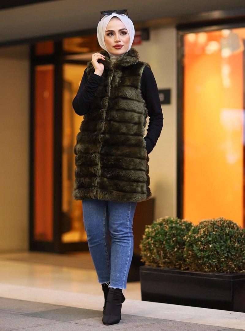 Pardesü Dünyası Yeşil Peluşlu Yelek