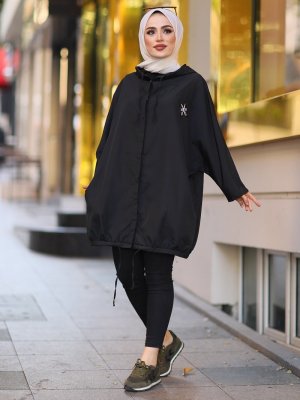 Pardesü Dünyası Siyah Reglan Kollu Gizli Düğmeli Kap