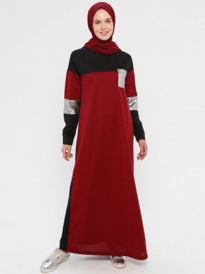 La Giza Fashion Bordo Cep Detaylı Blok Renkli Elbise