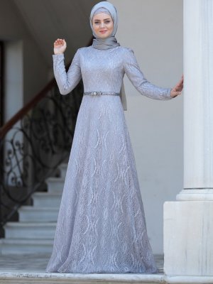 Ahunisa Gri Parıltı Abiye Elbise