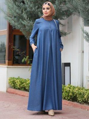 Neways Koyu Mavi A Pile Elbise