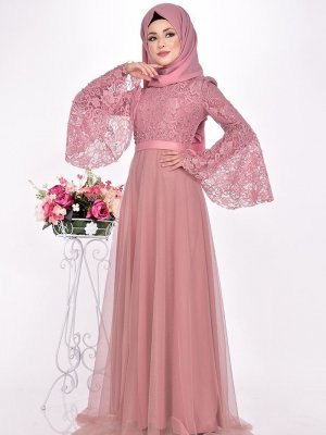 AYŞE MELEK TASARIM Gül Kurusu İncili Abiye Elbise