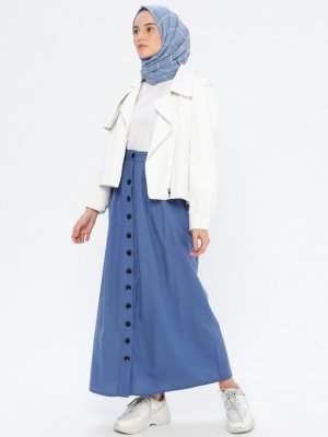 MisCats İndigo Boydan Düğmeli Etek