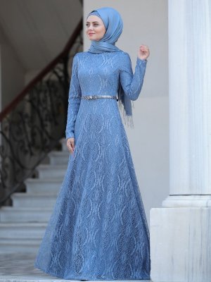 Ahunisa İndigo Parıltı Abiye Elbise