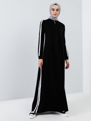Benin Siyah Doğal Kumaşlı Cep Detaylı Elbise