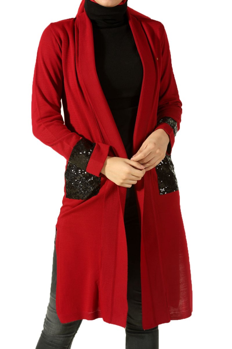 Allday Bordo Pul Payetli Triko Hırka