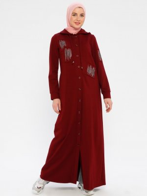 Ginezza Bordo Drop Baskılı Kapüşonlu Ferace