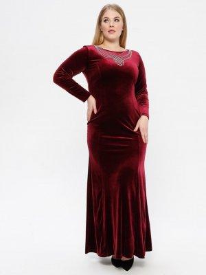 Arin Bordo Yaka Aksesuarlı Kadife Abiye Elbise
