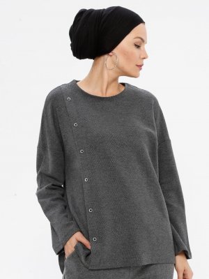 Meryem Acar Siyah Gri Asimetrik Tunik