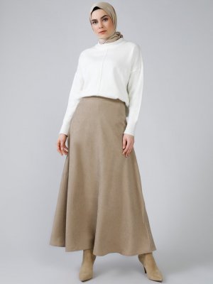 Refka Açık Vizon Fitilli Kadife Etek