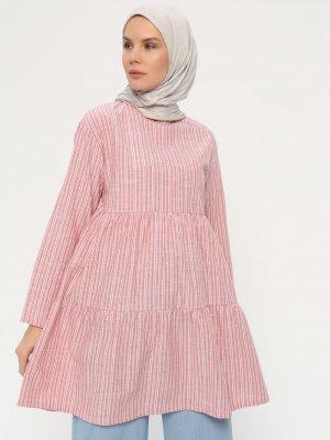 Meryem Acar Kiremit Çizgili Bisiklet Yaka Tunik