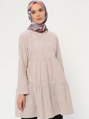 Meryem Acar Vizon Çizgili Bisiklet Yaka Tunik