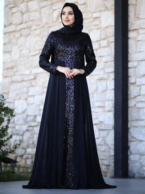 Amine Hüma Siyah Elvan Abiye Elbise