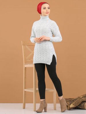 Tofisa Gri Boğazlı Yaka Triko Tunik