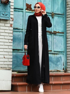 Neways Siyah Fermuar Detaylı Ferace