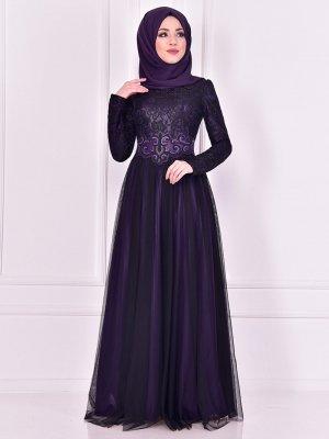 AYŞE MELEK TASARIM Mor Kemerli Taşlı Abiye Elbise