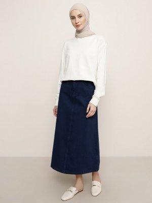 Benin Lacivert Doğal Kumaşlı Kot Etek