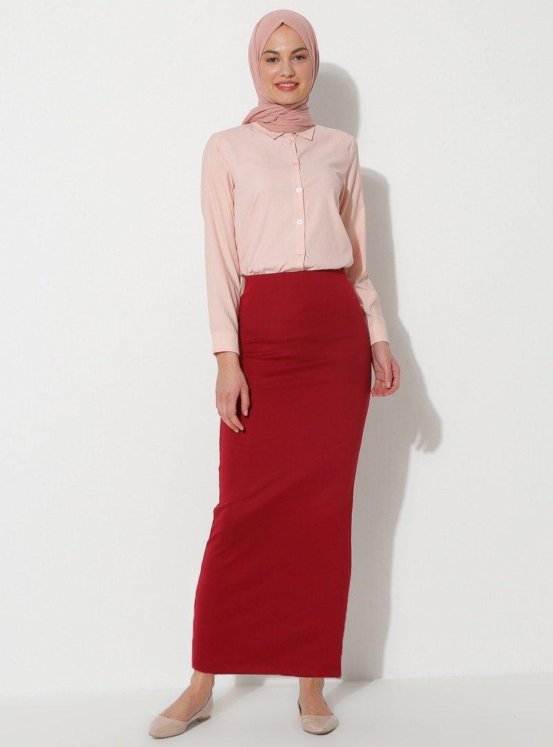 Mileny Bordo Düz Dar Etek