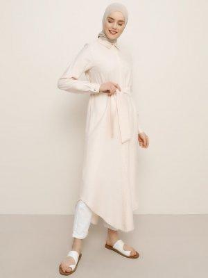 Benin Pudra Doğal Kumaşlı Gizli Düğmeli Tunik Elbise