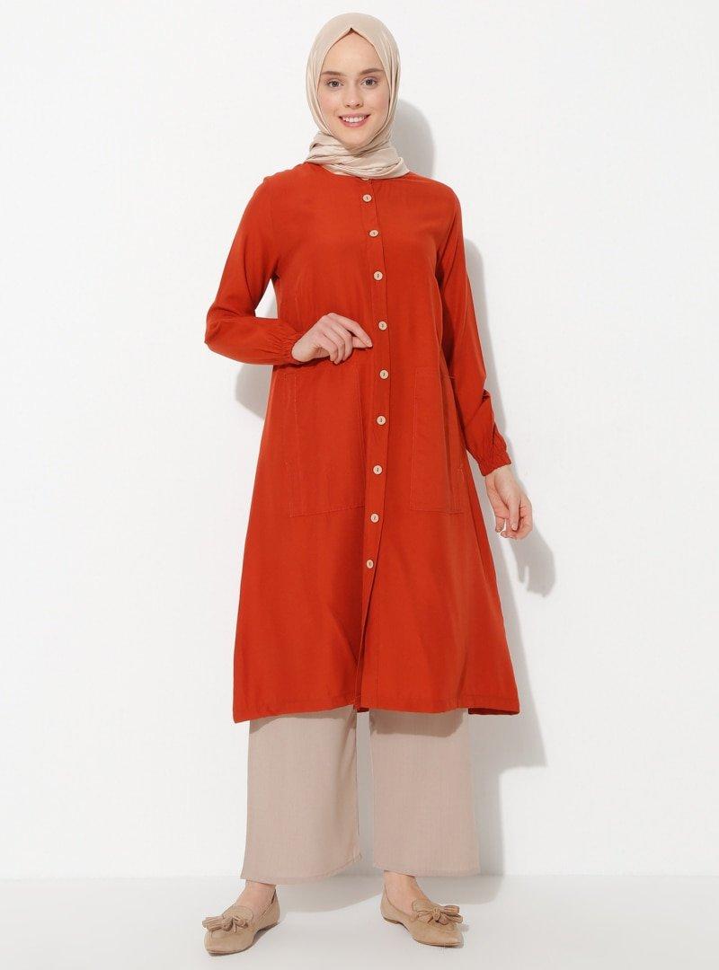 İLMEK TRİKO Kiremit Düğme Detaylı Tunik