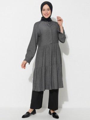 İLMEK TRİKO Gri Gizli Düğmeli Tunik