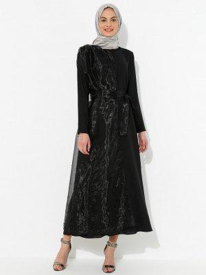 Tuncay Siyah Tül Parçalı Elbise