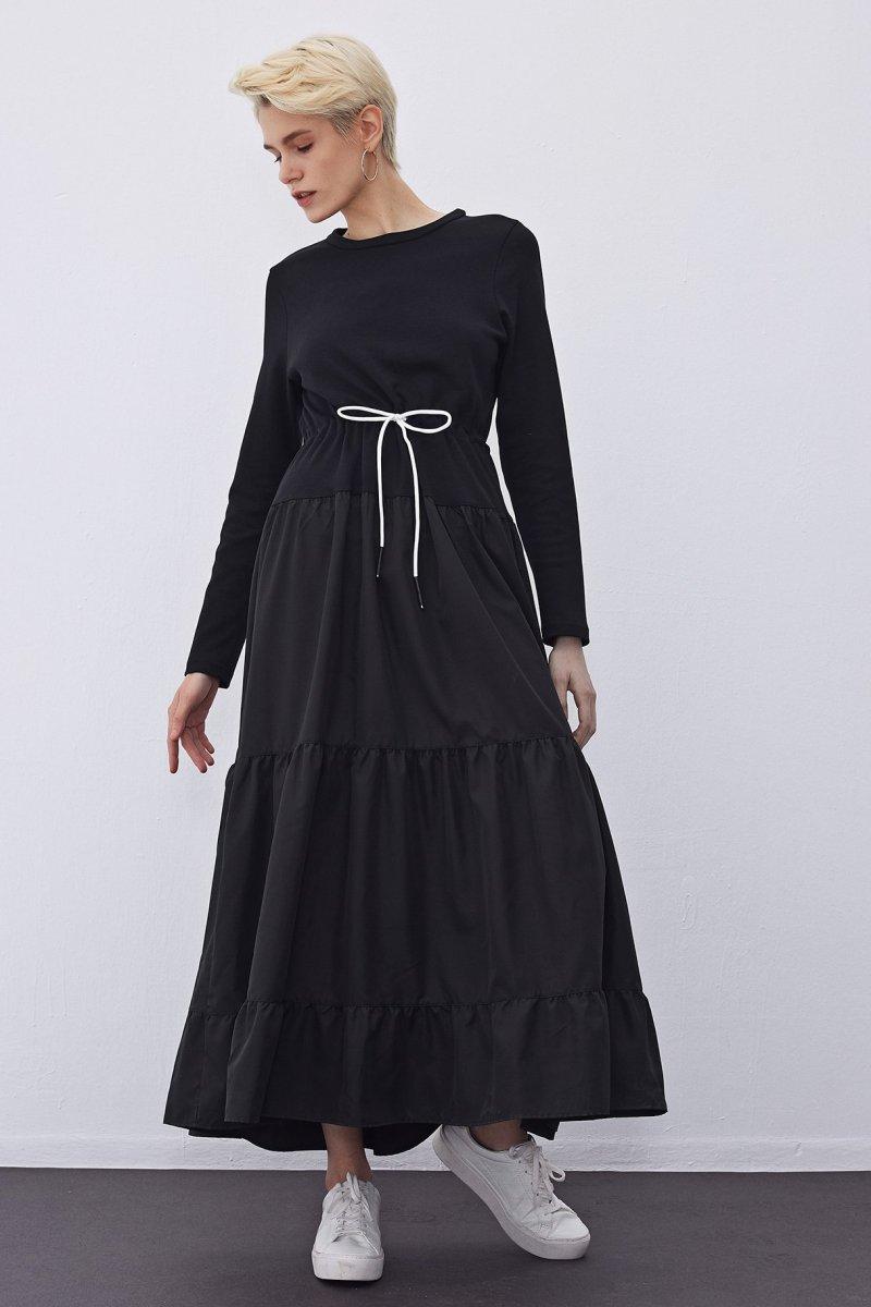 TOUCHE Siyah Beli Büzgülü Evaze Elbise