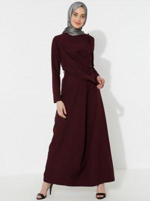 BÜRÜN Mürdüm Düğme Detaylı Elbise