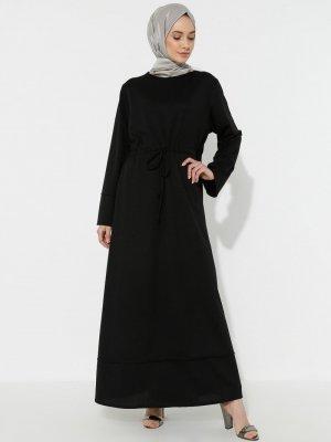 BÜRÜN Siyah Beli Bağcıklı Elbise